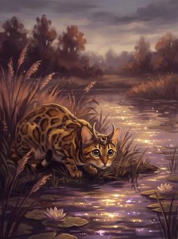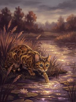 The pond shimmered in the evening light, and Loki crouched low, eyes wide, pupils huge—like two saucers ready to pounce.