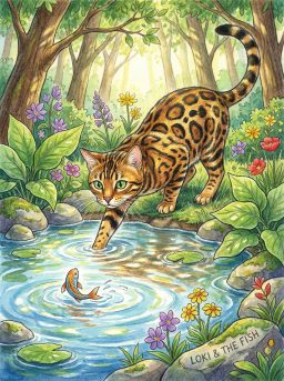 Water flew everywhere. Loki flew with it. The fish escaped. Loki landed in the pond with a soggy plop.