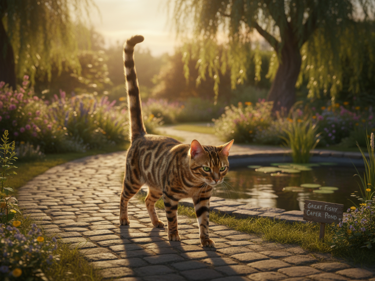 She returned home empty‑pawed but oddly satisfied. Dinner could be kibble tonight. She’d had an adventure, made a friend, and discovered that fishing was harder than it looked.